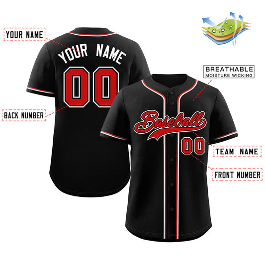 Custom Black Red-White Classic Style Authentic Baseball Jersey