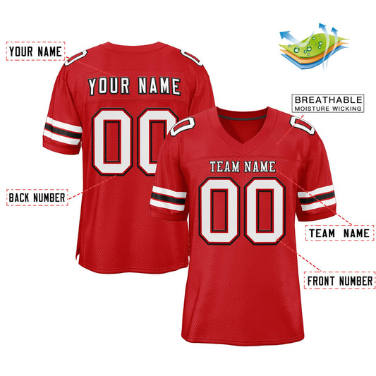 Custom Red White-Black Classic Style Mesh Authentic Football Jersey